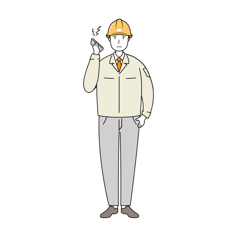 クレームの対応する安全ヘルメット着用の作業員のイラスト