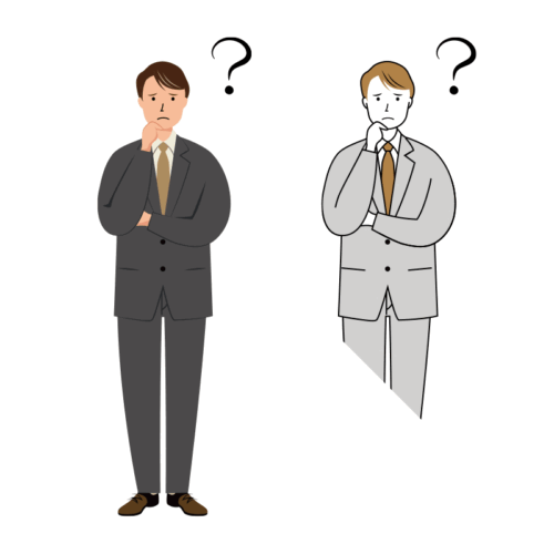 腕組みをして悩むビジネス男性のイラスト