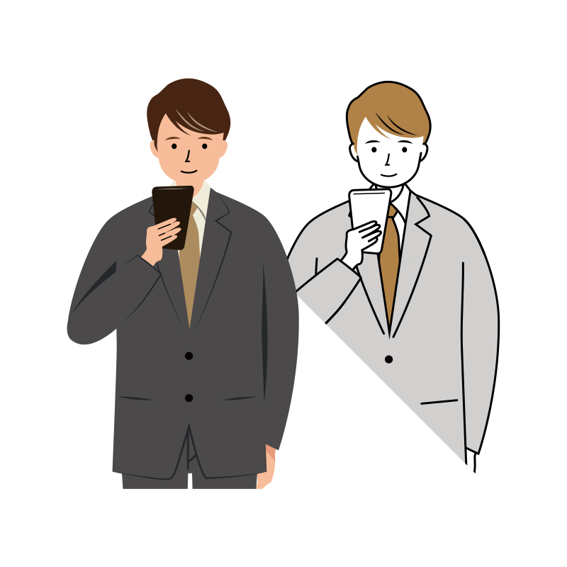スマホに夢中になるビジネス男性のイラスト-上半身