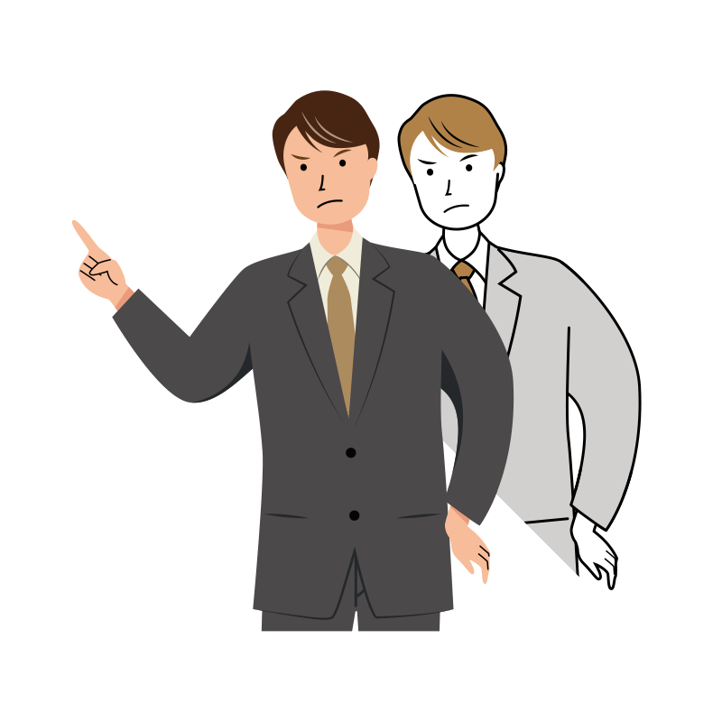 厳しく指摘をする男性、ビジネス、会社員、ビジネスマンのイラストです。シンプルで使いやすいオシャレなイラスト素材になっています。個人、法人、商用、非商用問わず(登録不要)無料でイラストを使う事ができます。
