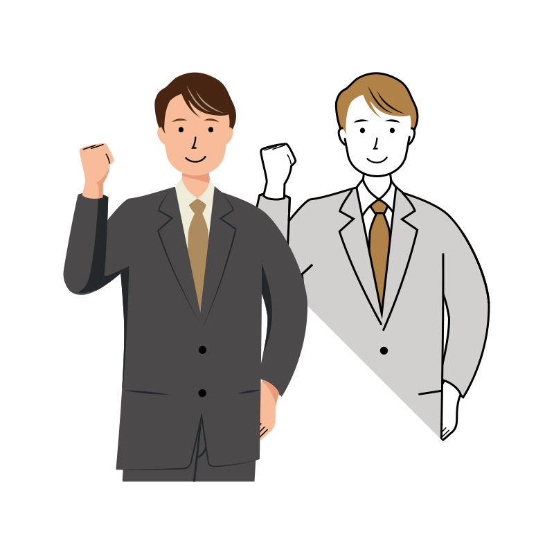 ガッツポーズをする男性、ビジネス、会社員、ビジネスマンのイラストです。シンプルで使いやすいオシャレなイラスト素材になっています。個人、法人、商用、非商用問わず(登録不要)無料でイラストを使う事ができます。