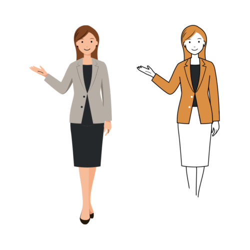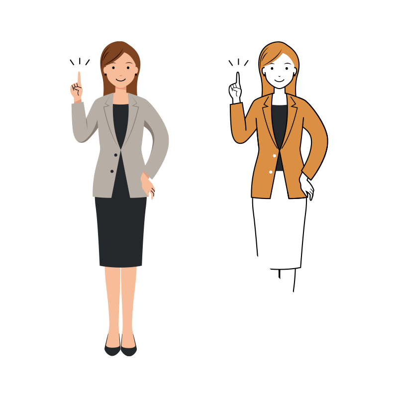 カジュアル服を着たロングヘアの女性ビジネスマン(会社員・OL)が、アドバイスやポイントを提案をするイラストです。シンプルで使いやすいオシャレでかわいいイラスト素材になっています。個人、法人、商用、非商用問わず(登録不要)無料でイラストを使う事ができます。