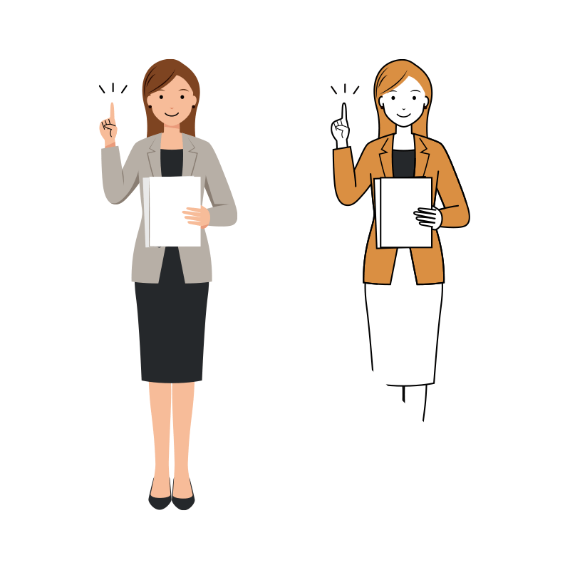 ビジネス イラスト - 女性・説明・企画案・カジュアル・ロングヘア