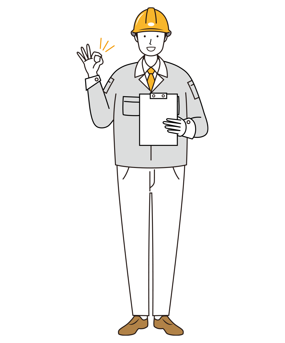 OKサインを出す男性作業員のイラストになります。 オシャレでシンプルな使いやすいイラスト素材になっています。個人、法人、商用、非商用問わず(登録不要)無料でイラストを使う事ができます。 目次ダウンロード手順 イラストをクリックすると、ズームで表示されますが表示された画像を直接ダウンロードして使う事もできます。 イラストの使用範囲に関しては、「よくある質問」のページを拝見してからご利用下さい。また使用範囲についてのご質問は、「お問い合わせ」よりお願いいたします。 PNGダウンロード EPSダウンロード ビジネス 建設業・作業員 男性 よかったらシェアしてね! URLをコピーしました! 建設現場で働く女性作業員のイラスト OKサインを出す男性作業員のイラスト-上半身 関連記事 OKサインを出す男性作業員のイラスト-上半身 2025年10月18日 建設現場で働く女性作業員のイラスト 2025年10月18日 建設現場で働く男性作業員-上半身のイラスト 2025年10月16日 建設現場で働く男性作業員のイラスト 2025年10月16日 交通整理をする年配者の交通誘導員のイラスト(服装色違い) 2025年10月8日 交通整理をする年配者の交通誘導員のイラスト 2025年10月8日 誘導棒を持った年配者の交通誘導員のイラスト(服装色違い) 2025年10月8日 誘導棒を持った年配者の交通誘導員のイラスト 2025年10月8日