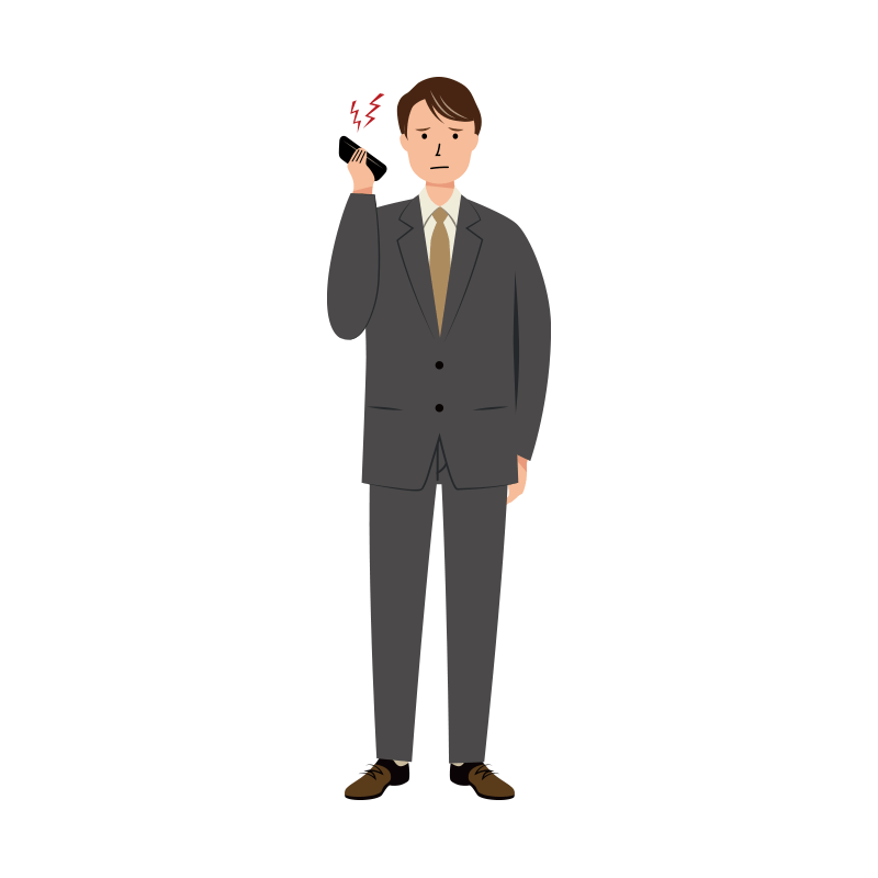 クレーム対応に応答する男性、ビジネス、会社員、サラリーマンのイラストです。シンプルで使いやすいオシャレなイラスト素材になっています。個人、法人、商用、非商用問わず(登録不要)無料でイラストを使う事ができます。