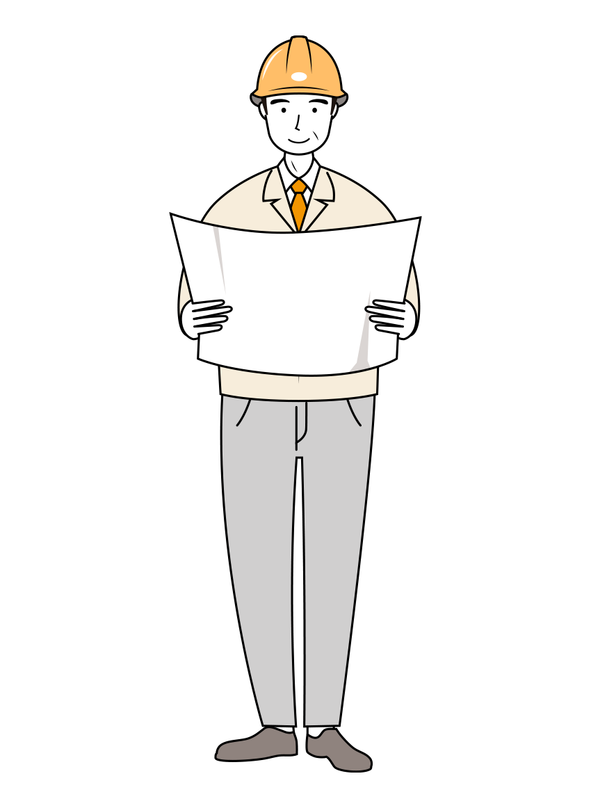 現場監督 (Site Supervisor) イラスト – シニア・確認・黄色ヘルメット