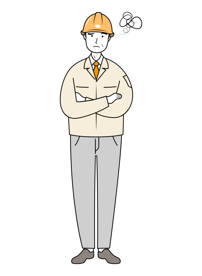 現場監督 (Site Supervisor) イラスト – シニア・悩む・黄色ヘルメット