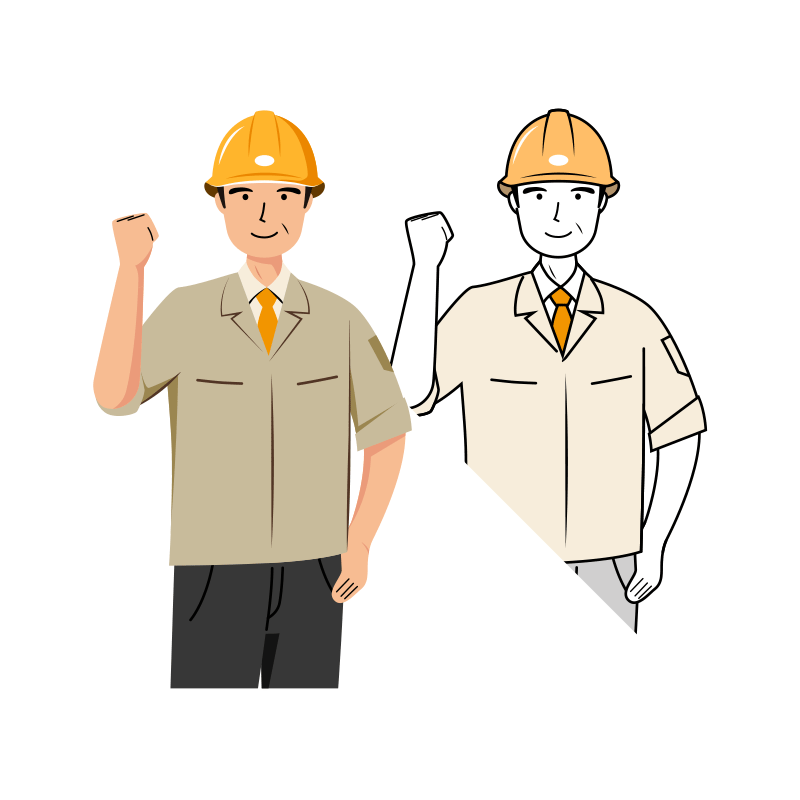 現場監督 イラスト – シニア・ガッツポーズ・黄色ヘルメット・上半身