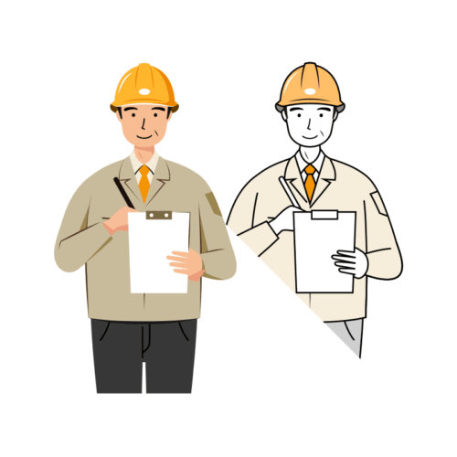 現場監督 イラスト – シニア・タブレット・黄色ヘルメット・上半身