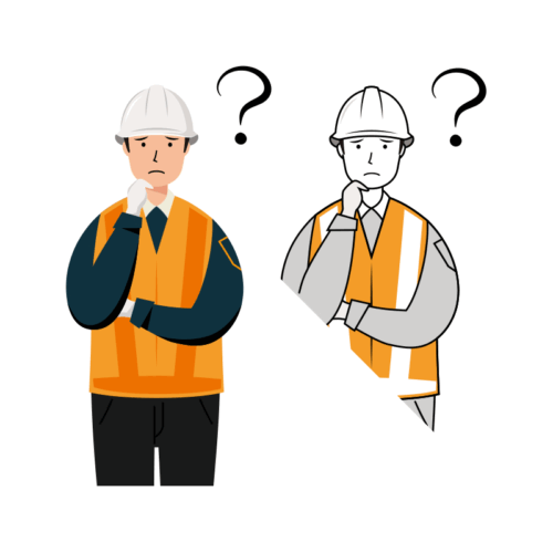 反射ベストを着た男性の交通誘導員が、左手に業務資料を持ち右手を使い説明している上半身のイラストです。