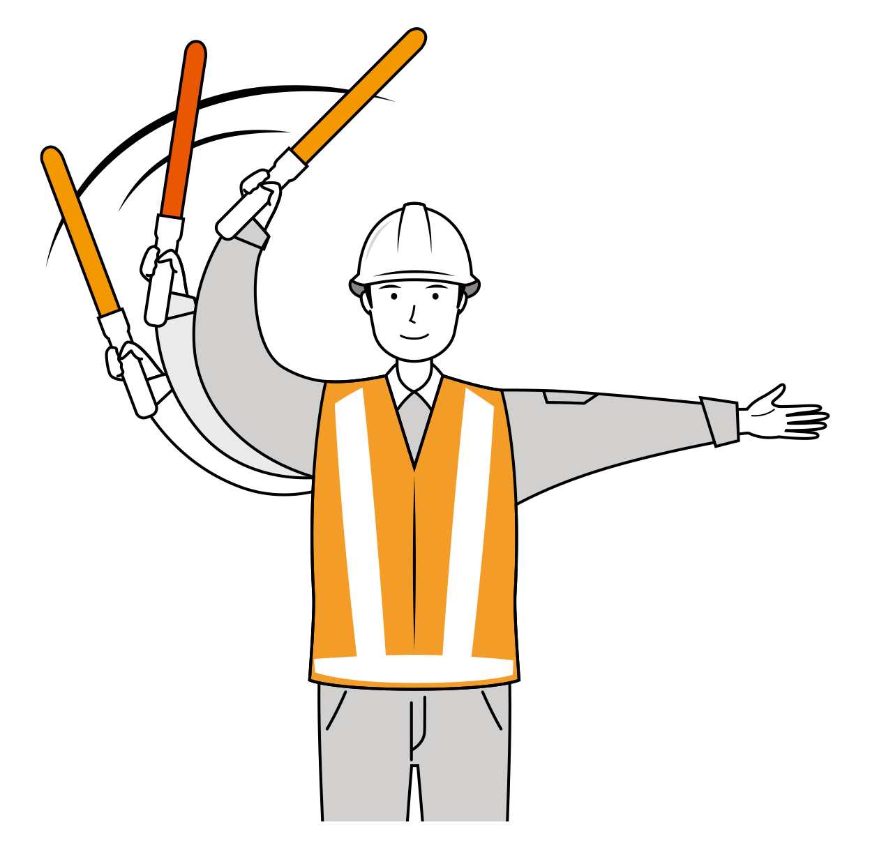 交通誘導員 イラスト – 男性・進行合図・反射ベスト・上半身