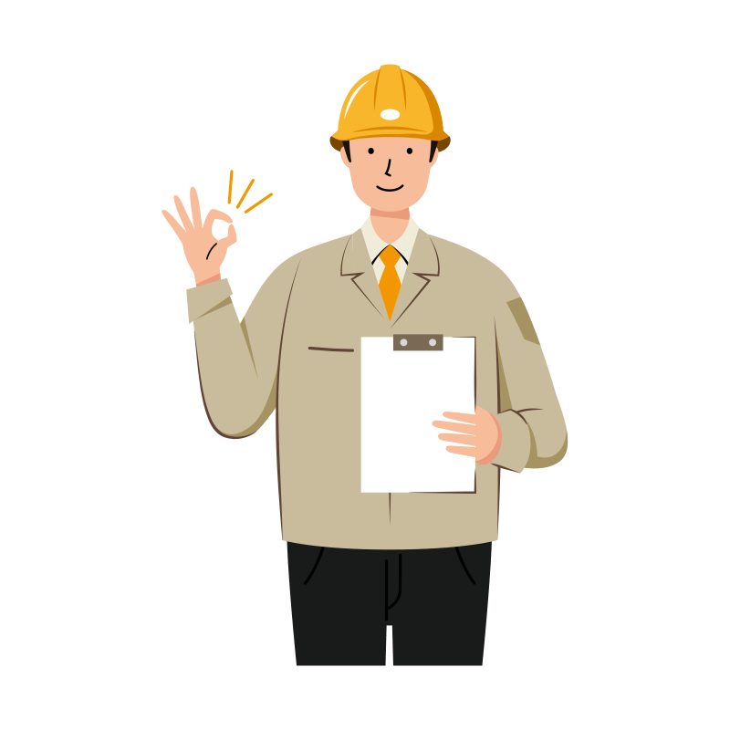 笑顔でOKサインをする男性作業員のイラスト-上半身