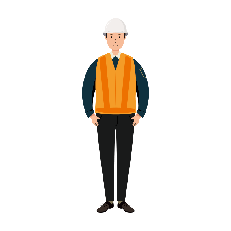 黄色のジャケットを着た、安全ヘルメット着用の交通誘導員の男性、交通整理、警備員、ガードマンのイラスト素材です。シンプルで使いやすいオシャレなイラスト素材になっています。個人、法人、商用、非商用問わず(登録不要)無料でイラストを使う事ができます。