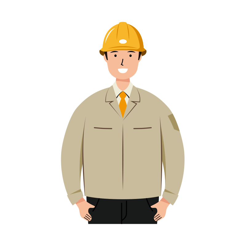 安全ヘルメット着用の笑顔の作業員の男性、現場作業員、建設現場、工場で働くイラスト素材です。シンプルで使いやすいオシャレなイラスト素材になっています。個人、法人、商用、非商用問わず(登録不要)無料でイラストを使う事ができます。