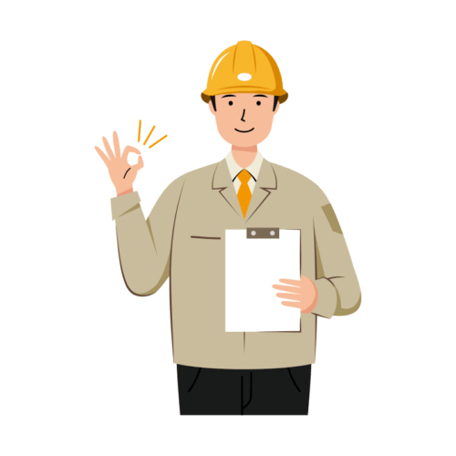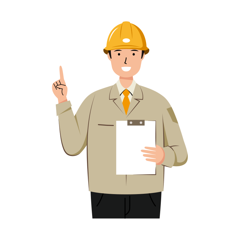 笑顔でアドバイス、ワンポイントの案内をする、安全ヘルメット着用の作業員の男性、現場作業員、建設現場、工場で働くイラスト素材です。シンプルで使いやすいオシャレなイラスト素材になっています。個人、法人、商用、非商用問わず(登録不要)無料でイラストを使う事ができます。