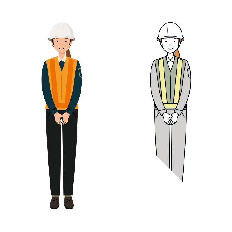 黄色のジャケットを着た、安全ヘルメット着用の女性交通誘導員、交通整理、警備員、ガードマンのイラスト素材です。シンプルで使いやすいオシャレなイラスト素材になっています。個人、法人、商用、非商用問わず(登録不要)無料でイラストを使う事ができます。
