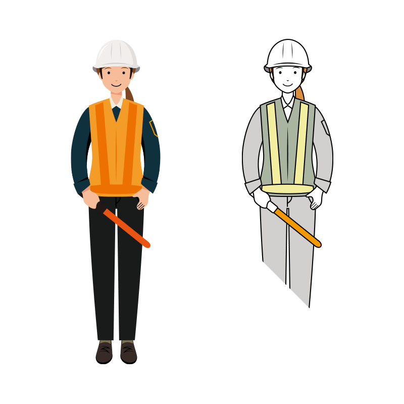 誘導棒を右手に持った、交通誘導員の女性、交通整理、警備員、ガードマンのイラスト素材です。シンプルで使いやすいオシャレなイラスト素材になっています。個人、法人、商用、非商用問わず(登録不要)無料でイラストを使う事ができます。