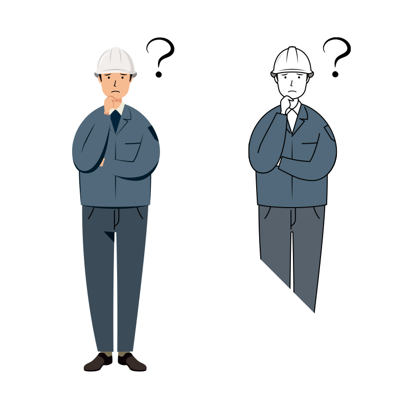 建設・現場 イラスト - 現場監督 (Site Supervisor)・男性・考える・白ヘルメット・塗り | イラストれいと
