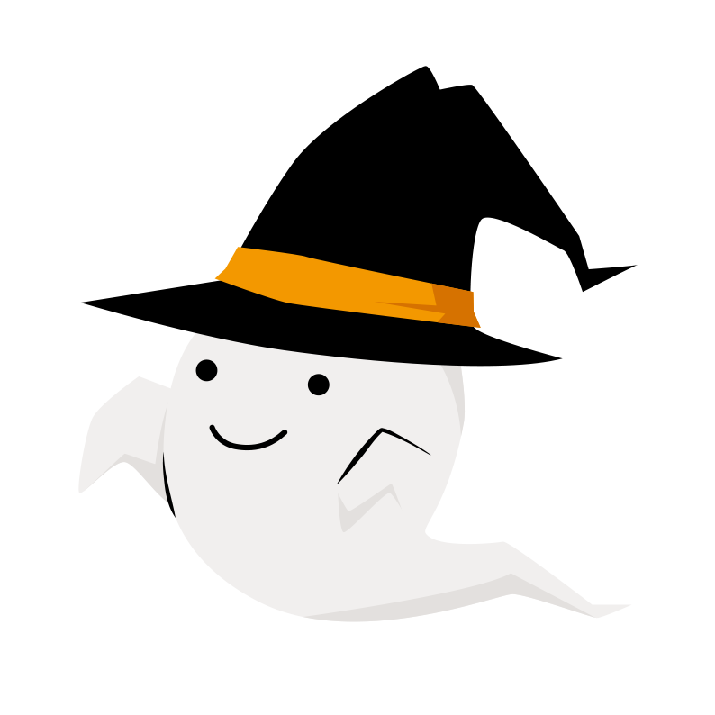 黒い帽子を被ったハロウィンの可愛いお化けのイラストです。シンプルで使いやすいオシャレなイラスト素材になっています。個人、法人、商用、非商用問わず(登録不要)無料でイラストを使う事ができます。