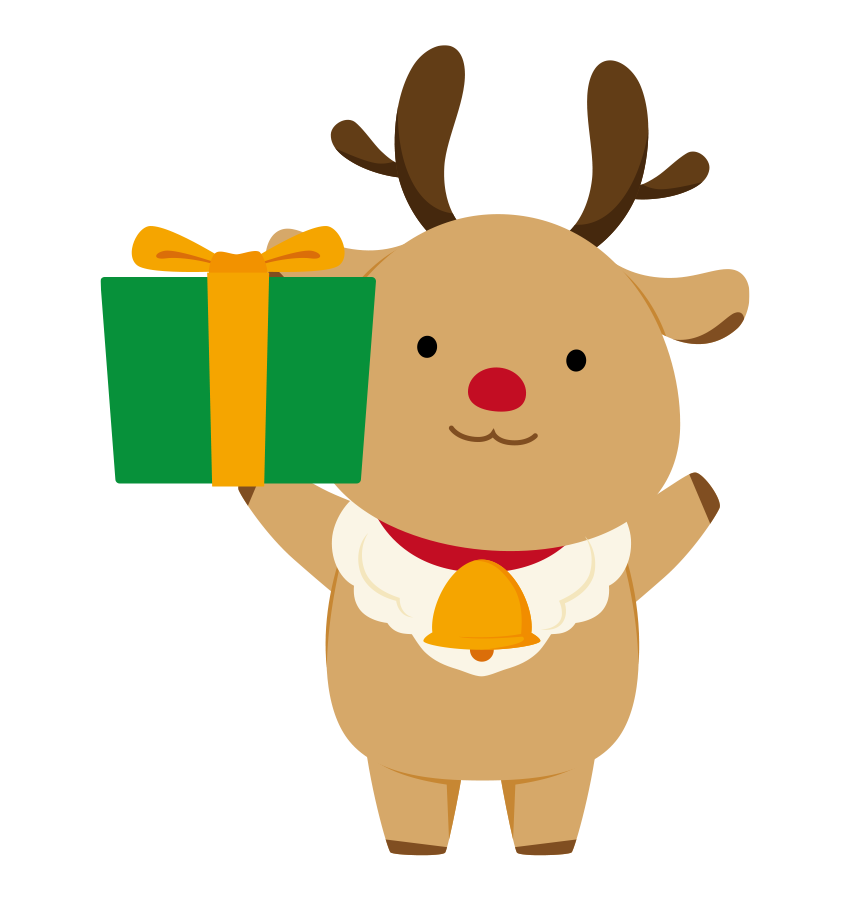 プレゼントを右手に持ち両手で喜んでいるトナカイの無料イラストフリー素材。個人、法人、商用、非商用問わず会員登録不要でイラストを使う事ができます。