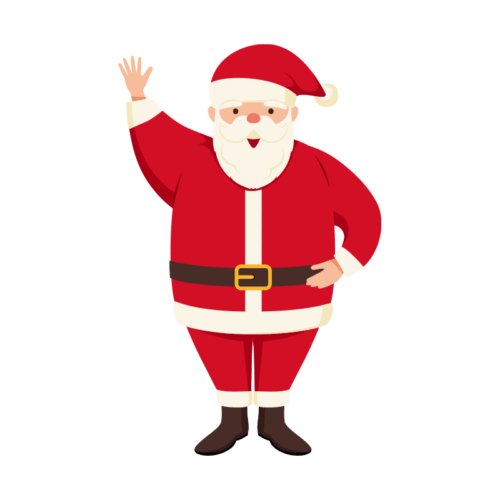 足を閉じて笑顔で左手を上げているサンタ、サンタクロースのイラストです。シンプルで使いやすいオシャレなイラスト素材になっています。個人、法人、商用、非商用問わず(登録不要)無料でイラストを使う事ができます。
