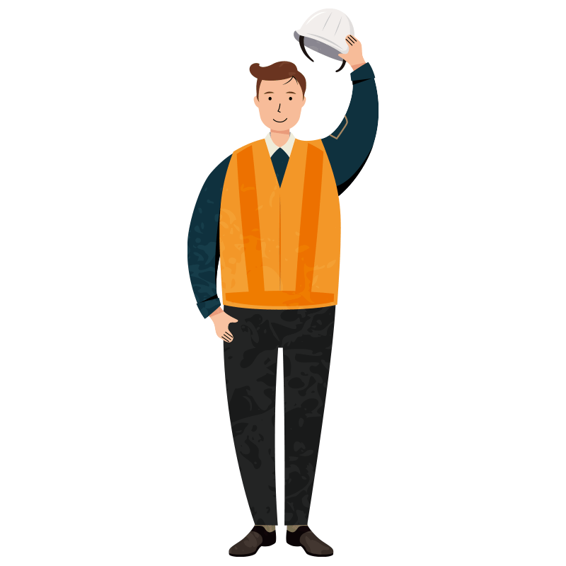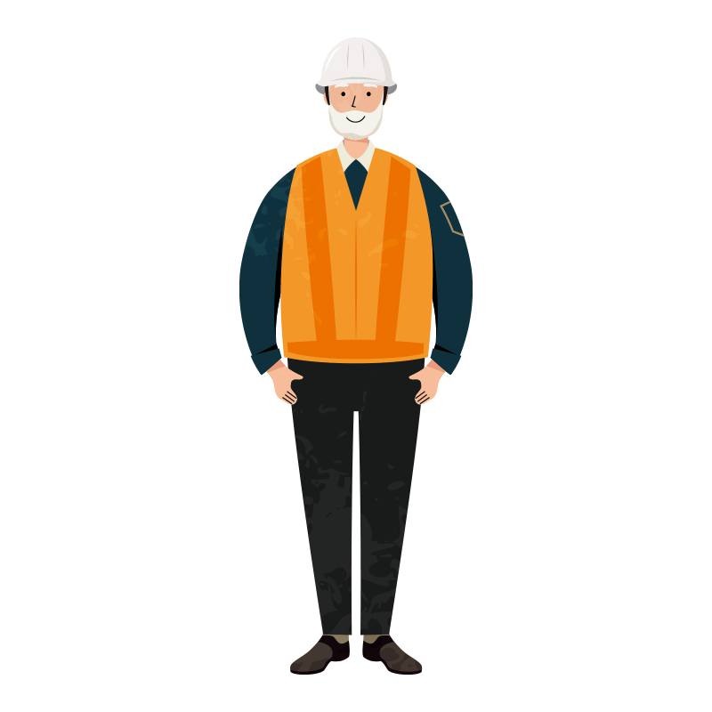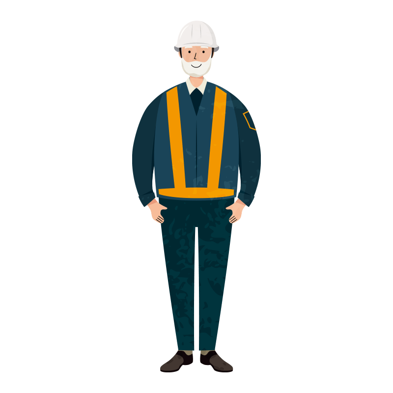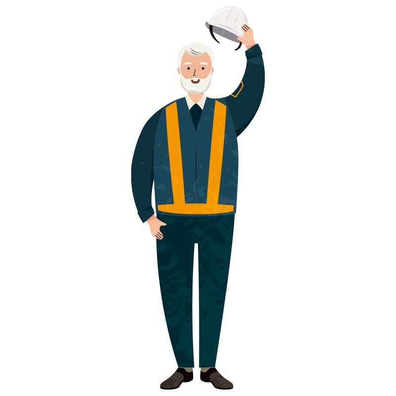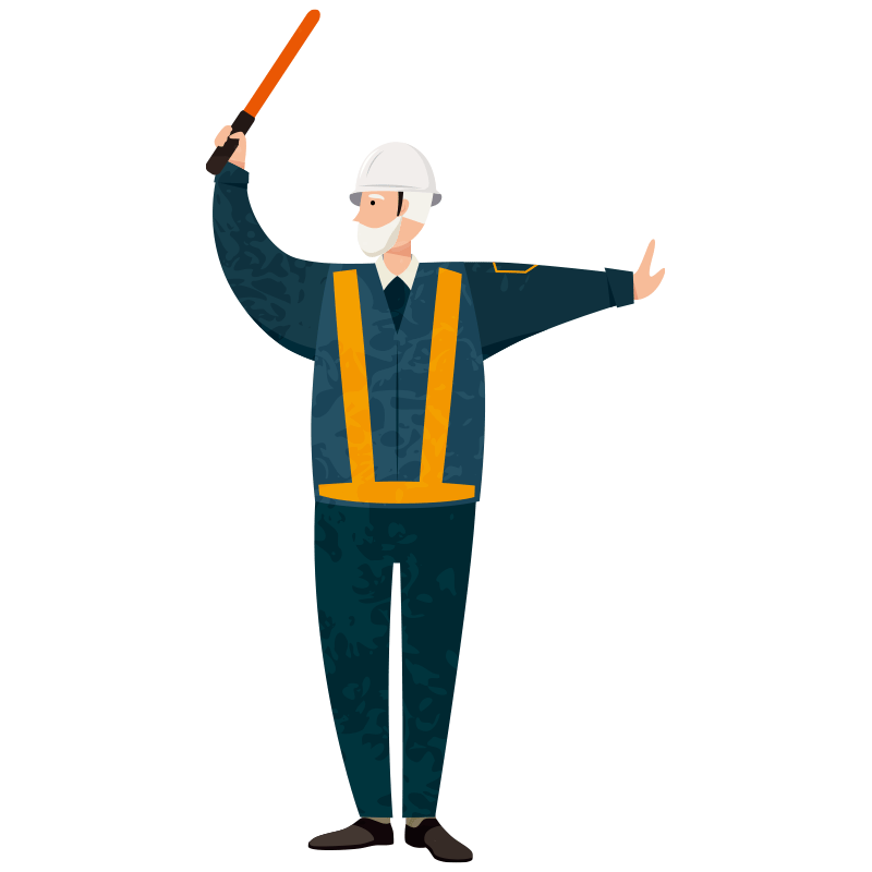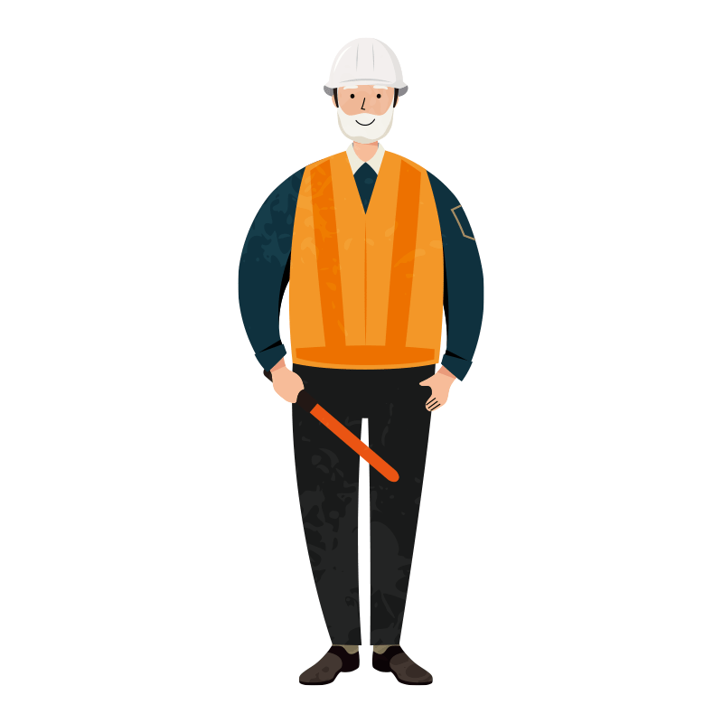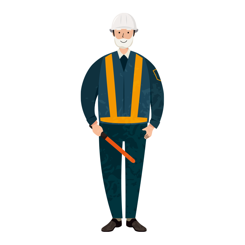 笑顔で挨拶をする年配者の交通誘導員のイラスト