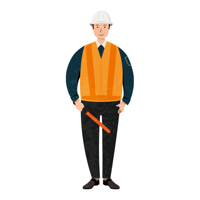 誘導棒を持った交通誘導員のイラスト(服装色違い)