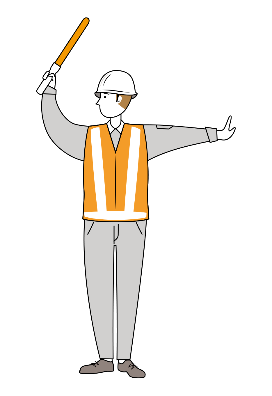 交通誘導員 イラスト | 無料・男性・線画・全身[TCML012-L]